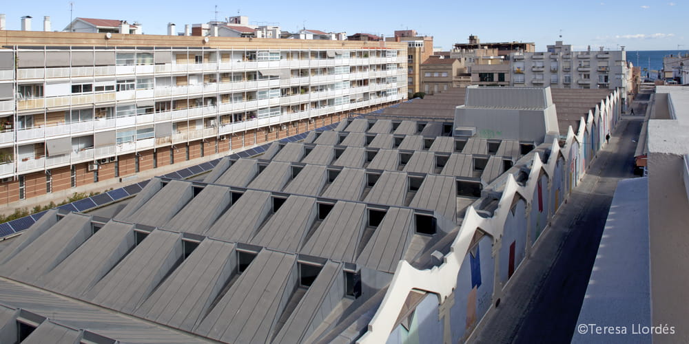 El conjunt originari estava format per disset naus paral·leles i ocupava tota una illa (60 x 120 m) de la Plana del Corb, l’eixample badaloní de principis de segle XX, on hi tenien cabuda tant els habitatges de la burgesia com les fàbriques. De l’antiga edificació només es conserven l’espai interior i les façanes dels carrers d’Enric Borràs i de Colom.