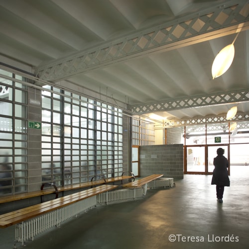 De l’interior, cal destacar la solució constructiva utilitzada per aconseguir les plantes lliures: pilars de ferro colat que suporten bigues de ferro en gelosia. L’estructura de la coberta està formada per encavallades de fusta amb peces metàl·liques que recolzen sobre les cartel·les – capitell dels pilars.