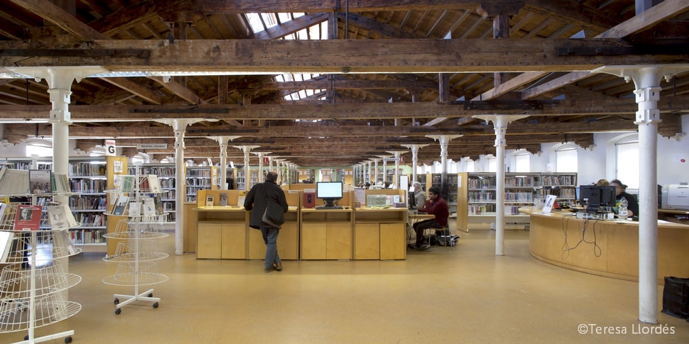 La rehabilitació va consistir en conservar l’estructura original, restaurar les parts deteriorades i adaptar la nau als nous usos. Així, per exemple, a la biblioteca s’eliminà una part del forjat per aconseguir un doble espai relacional entre les dues plantes. També s’obriren claraboies a la coberta per facilitar l’entrada d’il·luminació natural.